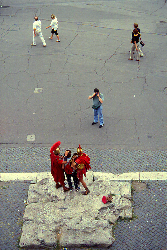 Ciao Tiziano, mi piace molto questa fotografia, soprattutto per le accoppiate di colore: le due persone in bianco, le due in nero, i due guerrieri vestiti di rosso, il fotografo e la "modella" di blu.