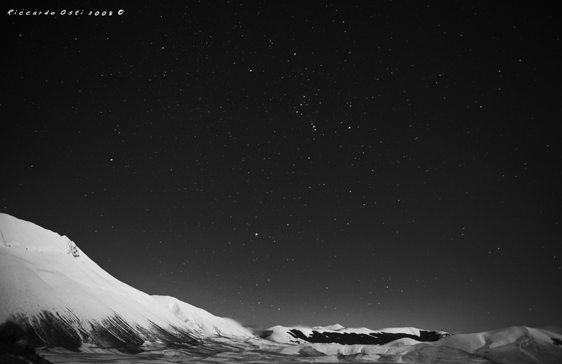 Deve essere un fremito sempre nuovo ammirare un cielo come questo e scorgere il bagliori della neve sotto questa luce...