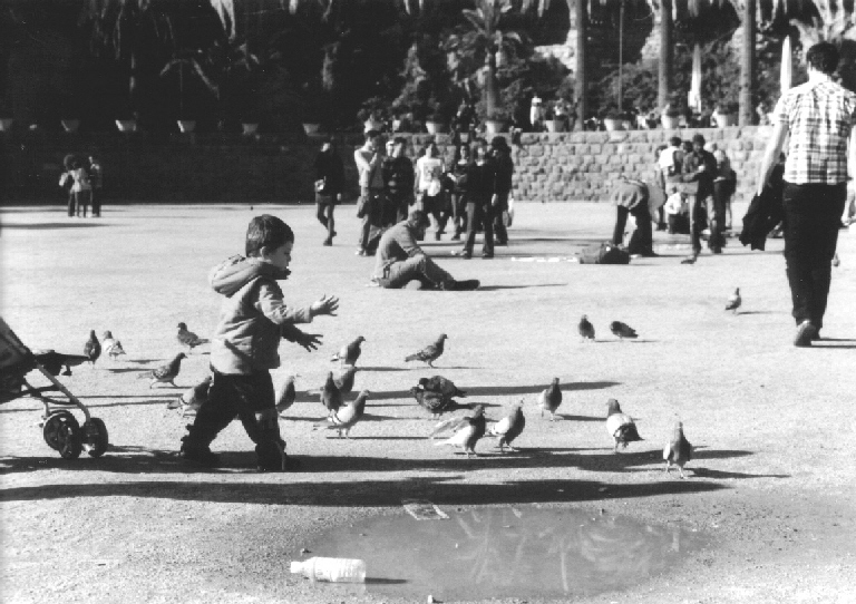 Il gesto del bambino è indistinto, i colombi sono statici.