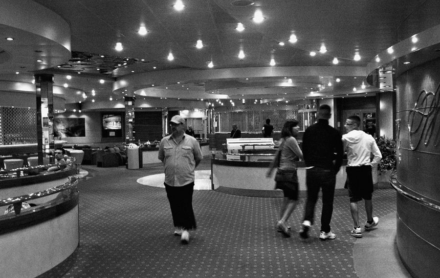 Mi sarebbe piaciuta un po' di rumorosità in meno sul bianco e nero, in quel modo ho la sensazione che quel quasi soffitto stellato avrebbe avuto maggior vigore e altrettanto risalto sarebbe uscito dalla moquette in un certo senso concorde..