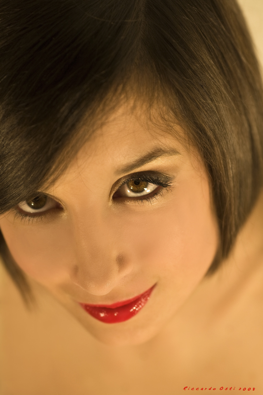 Tecnicamente la scelta si far fluttuare il viso sulla cremosità dello sfocato è coerente all'insieme e la focheggiatura sugli occhi molto bella, anche con il secondo occhio già velato, eterna discussione fra ritrattisti sulla correttezza di questa scelta di profondità di campo , talvolta coraggiosa, talaltra un po' obbligata, che in questo caso non mi disturba affatto.