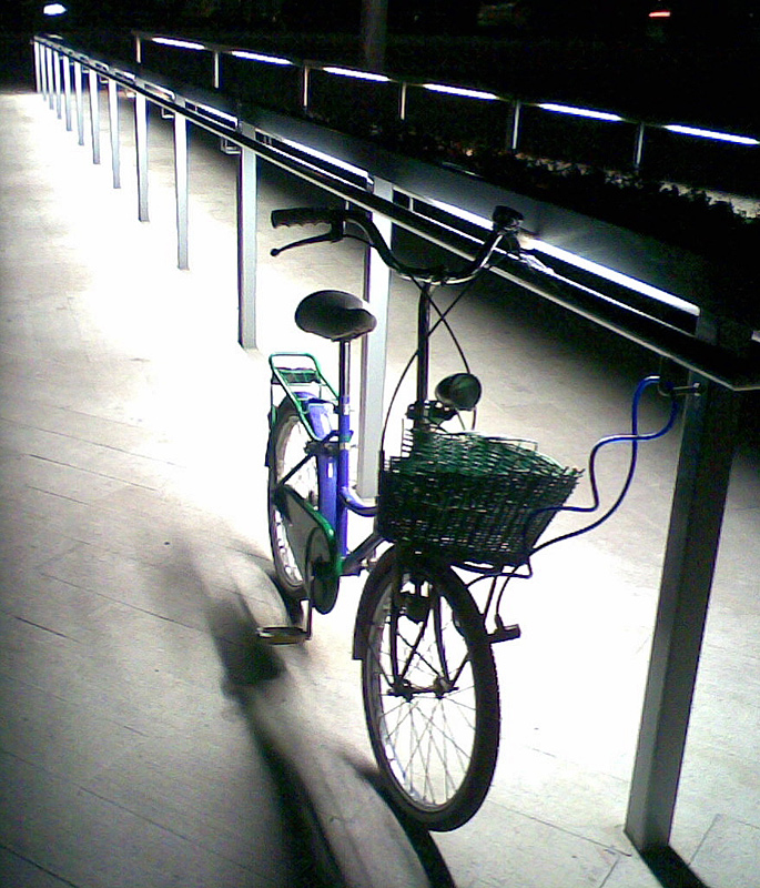 Grazie per i preziosi commenti: in effetti mi rendo conto che la bici comunica poco, forse è troppo centrale e troppo "presente", avrei dovuto riprendere da un po' più lontano e forse un po' più basso per esprimere meglio ciò che volevo: una bici di quelle d'altri tempi (non lontanissimi, ma neanche recenti o contemporanei), con le ruote piccole e un piccolo cestino e colori vivaci, tipica da nonno (ma non è detto), sicuramente non comune, simbolo di un certo "stile di mobilità", semplice, essenziale, pratica (ed ovviamente ecologica e silenziosa).