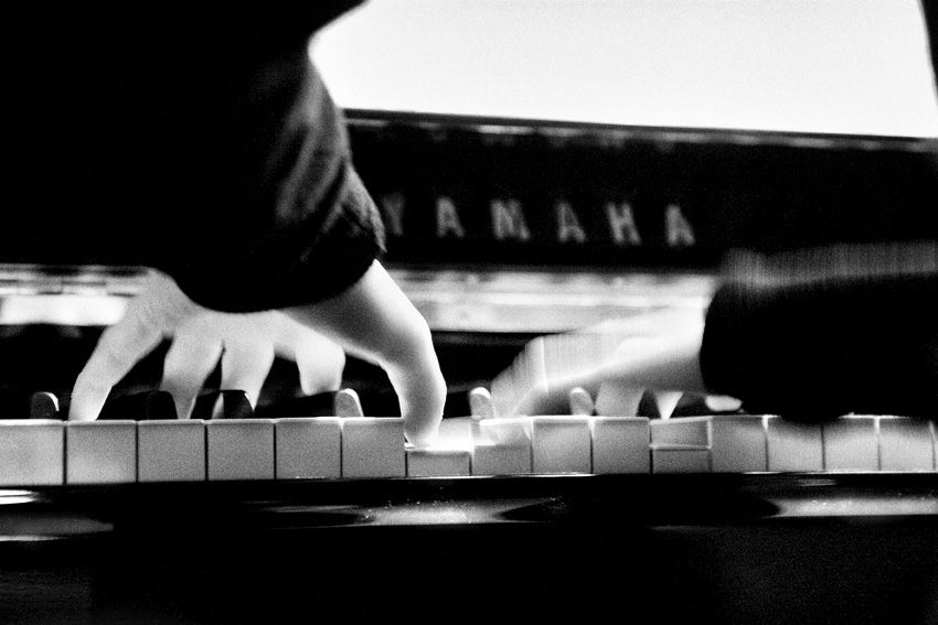 Molto bella perchè sei riuscito benissimo a ritrarre la dinamicità del pianista.