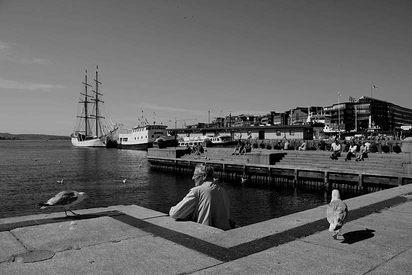 Ciao Mauro, un bello scatto ottima l'armonia che si è creata tra i gabbiani e l'uomo a sedere sulla banchina.