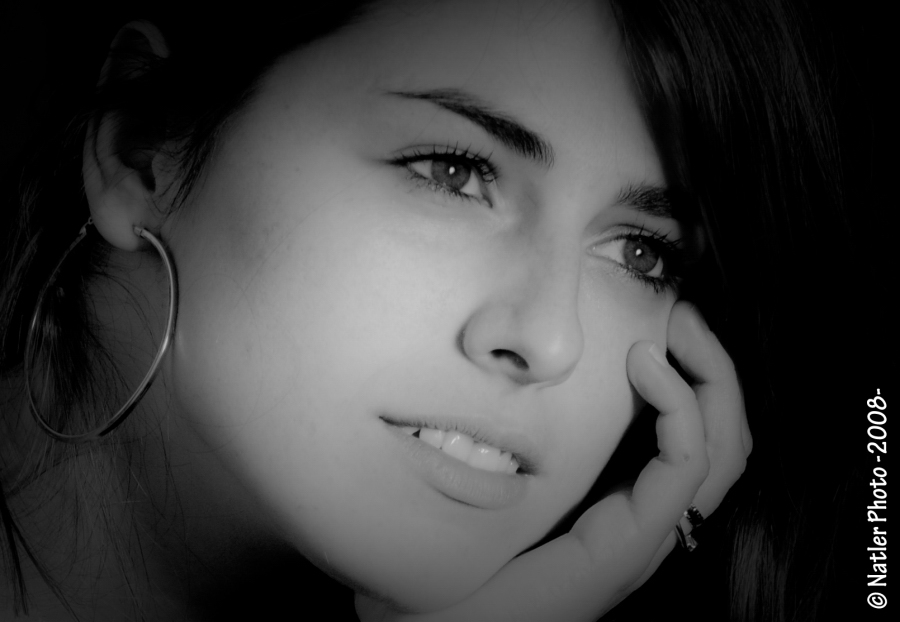 è tutto a posto mi pare, espressione sognante che mi regala molto, anche se avrei incluso un po' di polso.. tutto a parte il fatto che vedo troppi grigi.. non mi sarebbe dispiaciuto un po' di bianco in più su quella guancia.
