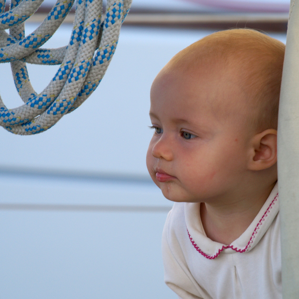 A mio avviso ci sono due elemnti che disturbano la foto, in primis l'oggetto posto alla destra del bimbo, e sinceramente la corda così ben a fuoco non mi fa impazzire. L'espressione colta del bambino mi piace molto anche se il fuoco mi sembra cada sulla bocca e poco sul primo occhio.