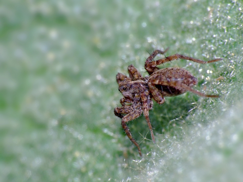 Grazie Matty, per l'angolazione come ho detto non avevo gli spazi materiali il ragno è praticamente microscopico e la pianta è rasoterra, lui era vicino al centro della pianta fra altre foglie.