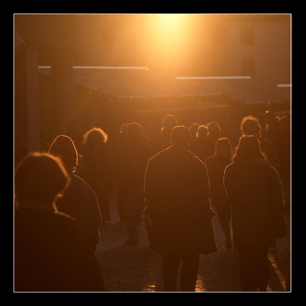 Bellissimo l'effetto della luce che illumina i contorni delle sagome delle persone.
