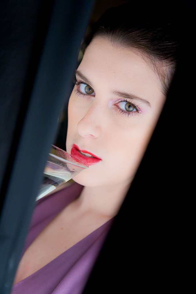 Gran bel ritratto, sembra quasi rubato attraverso una tenda in un locale notturno. Ottimo viso e momento colto, ed interessanti cromie. A me non dispiace l'altro occhio non nel piano di messa a fuoco. Complimenti.