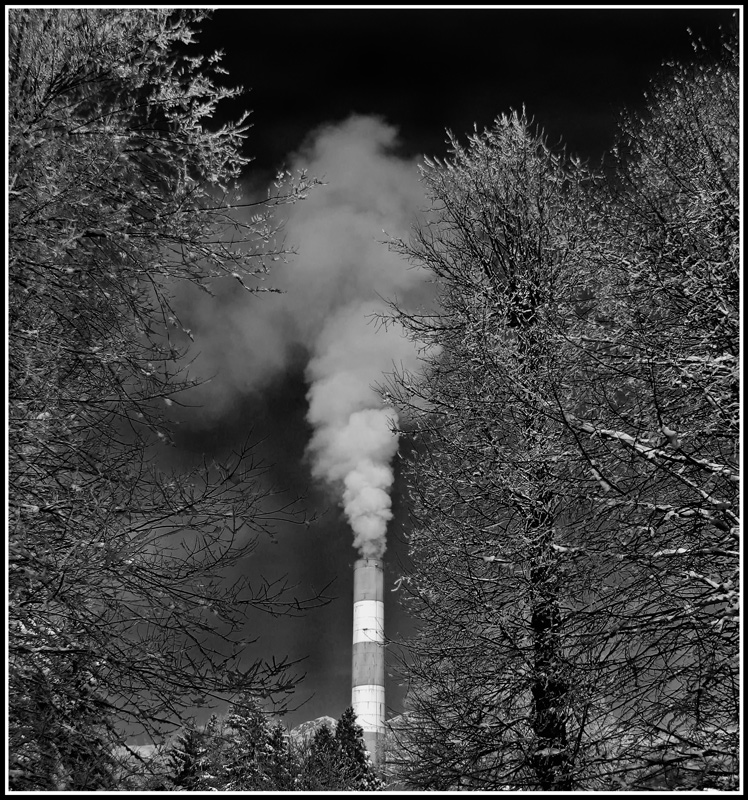 | Mamma mia.... tutti quegli alberi che rovinano il bel quadretto della ciminiera, certo questo inquinamento da albero è pazzesco. Bel b&w Ciao Giovanni