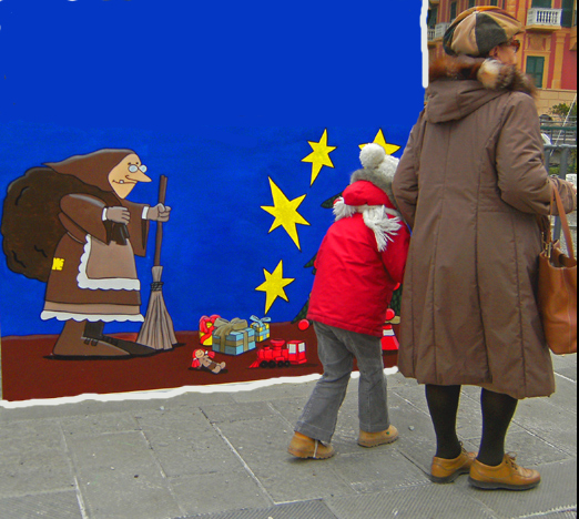 Per tenerla come street, potevi abbassarti e avere il soggetto e il disegno della befana ad altezza della fotocamera, tra l'altro è il modo migliore di riprendere i bambini, quello di abbassarsi alla loro altezza, escludevi il panorama in alto e rendevi l'osservatore più partecipe della scena.