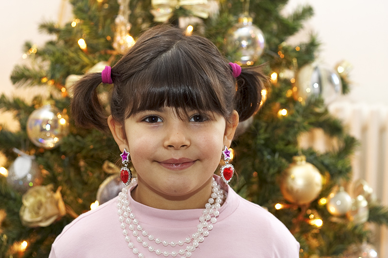 Bella foto ricordo Natalizia, e bella la tua nipotina. E anche ben esposta. però perdonami, è centrale come una foto segnaletica, ha l'ombra sotto il mento, lo sfondo è allineato con la bigiotteria... ma non puoi farle un ritratto migliore?