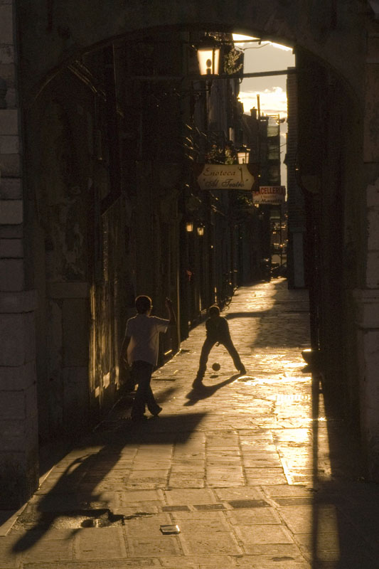 dolcissima, evocativa dei tempi in cui si giocava senza auto nei vicoli..I giochi che saranno ' per sempre' co ngli amici di sempre! Mi piace moltissimo anche il colore, così caldo, così antico ! Perfette le ombre dei due monelli ...Molto molto bella..anche il leggero ' sfumato' della scena! Ok!