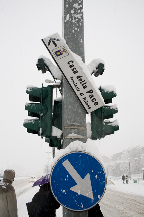 stavo pensando ad una cosa... spostanoti sulla dx avresti potuto mettere una persona sotto la freccia blu... magari rafforzava lo scatto rendendo la figura umana ancora più terrena in antitesi alla direzione della freccia della casa della pace...