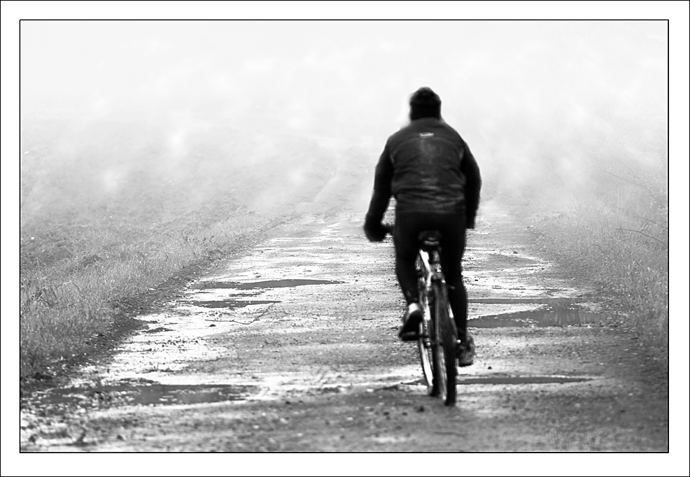 Se aspettavi ancora un attimo o se scattavi una foto in più, ci sarebbe stata la silhouette del ciclista un po' più lontana e confusa nella nebbia il chè a mio parere, avrebbe reso la foto ancora più piacevole.  |