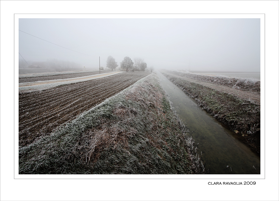 I colori, sopraffatti dal gelo, cercano tuttavia di emergere, creando un effetto di toni pastello che hai saputo rendere molto bene, sfruttando a tal fine la morbidezza della luce diffusa dalla foschia.