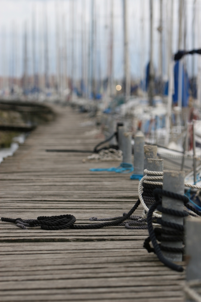l'idea e' molto buona, ma non la trovo riuscita, sfocando troppo lo sfondo gli alberi delle vele delle barche creano un elemento di disturbo, e con un taglio sopra acquistiamo maggior leggibilità di quel che volevi mettere in luce, in basso avrei privilegiato le primi due bitte in legno, eliminando l'altro elemento di disturbo in basso a destra.