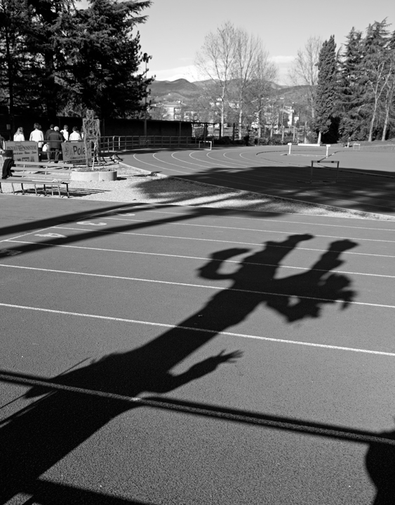 Non può esserci un collegamento con la pista di atletica,secondo me, la mano raffigurata nella funzione di un ''partenza, via!!'' è troppo debole...buona cosi, lei (l'ombra) da sola, funziona si e alla grande.  |