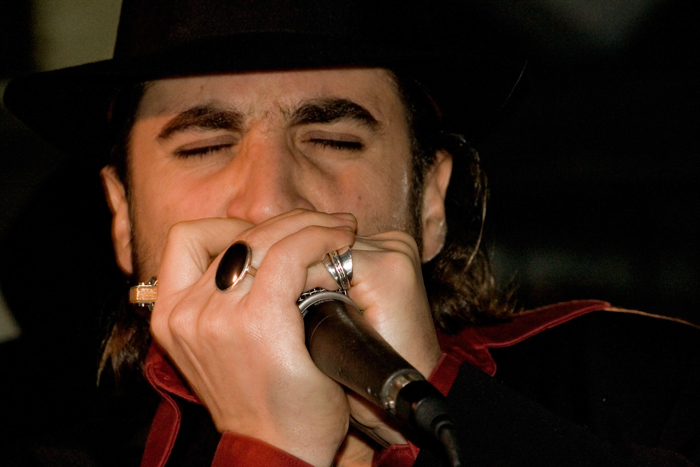 | hai detto bene non è stato facile! 1600 iso e 70-300 senza flash quasi completamente al buio con una piccola luce puntata sul armonicista durante un esibizione in un piccolissimo bar spagnolo. |