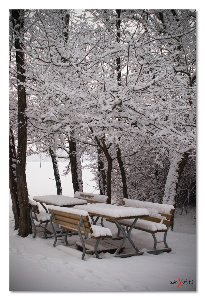 Simpatica proposta nel titolo di questa bella immagine. Piacevolissimo anchel'effetto dei rami innevati che si intrecciano a tal punto da sembrare ricamo.
