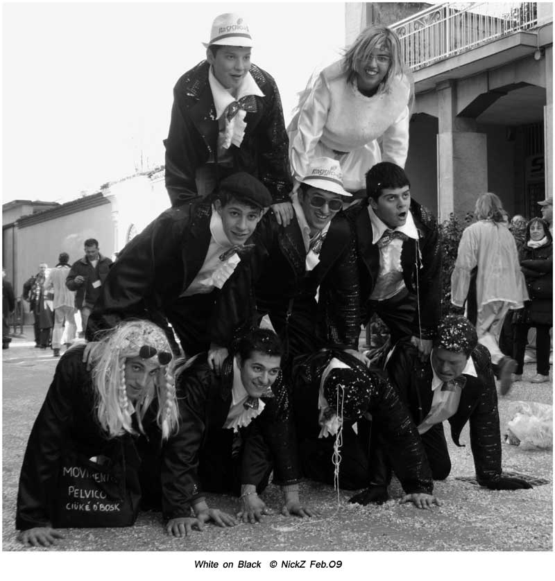 | Forse non è la foto più adatta per il bianco e nero. In questa foto i costumi, i coriandoli, l'atmosfera carnevalesca a mio avviso richiedevano il colore.