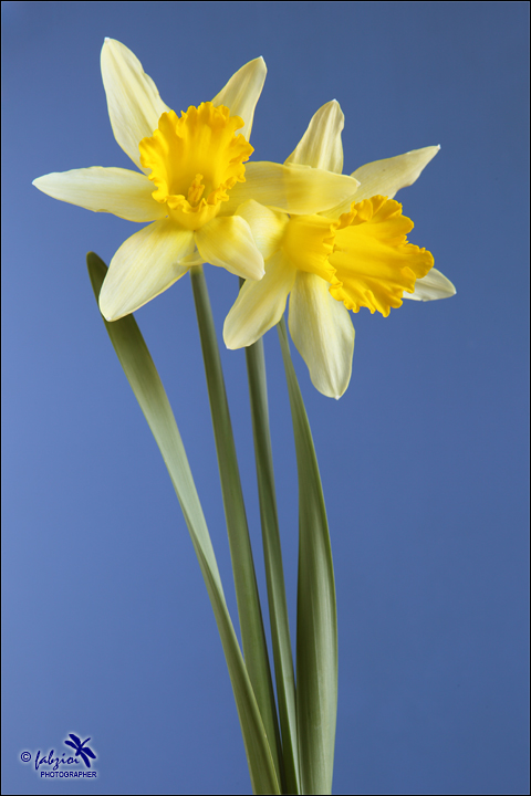Hai creato un finto cielo, ma i due fiori sembra vogliano raggiungerlo, tanto loro non sanno della finzione. Veramente belli. Ottima la scelta dell'illuminazione.