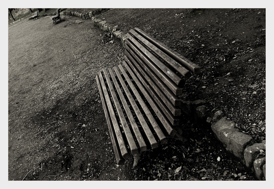 La resa grafica mi piace molto, ma la composizione secondo me lascia abbastanza a desiderare. Se volevi rendere la panchina in PP dovevi escludere lo sfondo che messo così al limite in alto disturba solamente. Altrimenti bisognava cercare un punto di ripresa alternativo, magari giocando con la profondità di campo.