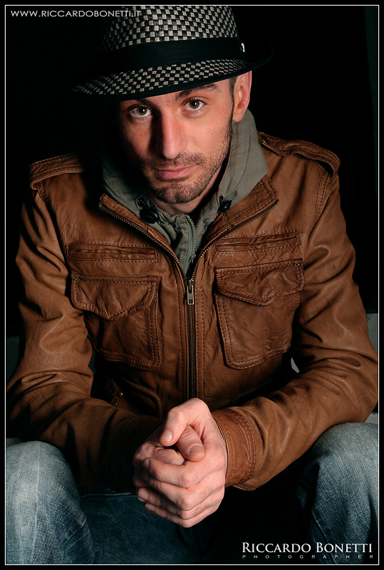 il "set" è una scalinata in muratura. alla sinistra del soggetto c'è un muro bianco (l'angolino che spunta in alto) su cui ho fatto rimbalzare il 430 montato in macchina. le gambe sono strane forse per quel motivo o forse per il grandangolo.