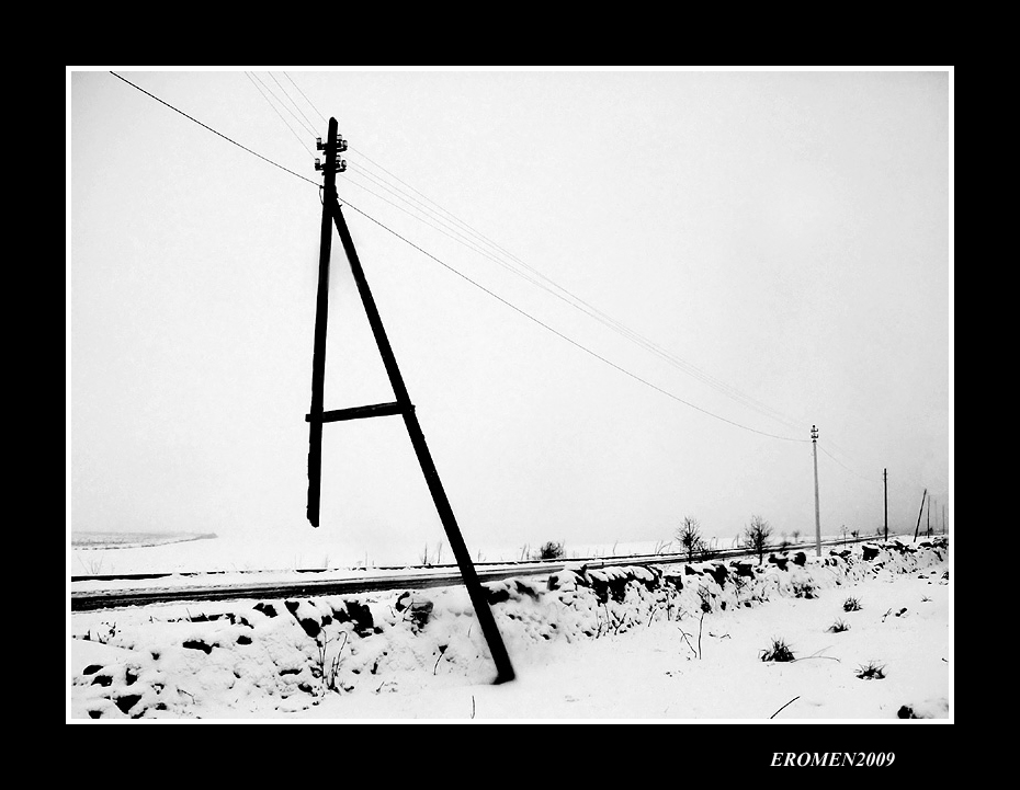 Mi piace in particolar modo l'alto contrasto quasi grafico , tra la neve ed il resto. Ok!