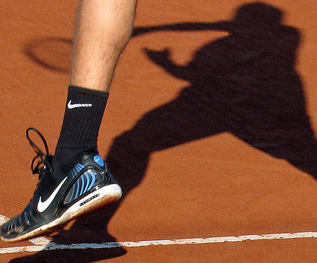 Si vede il movimento dalla scarpa e l'ombra chiarifica il resto.