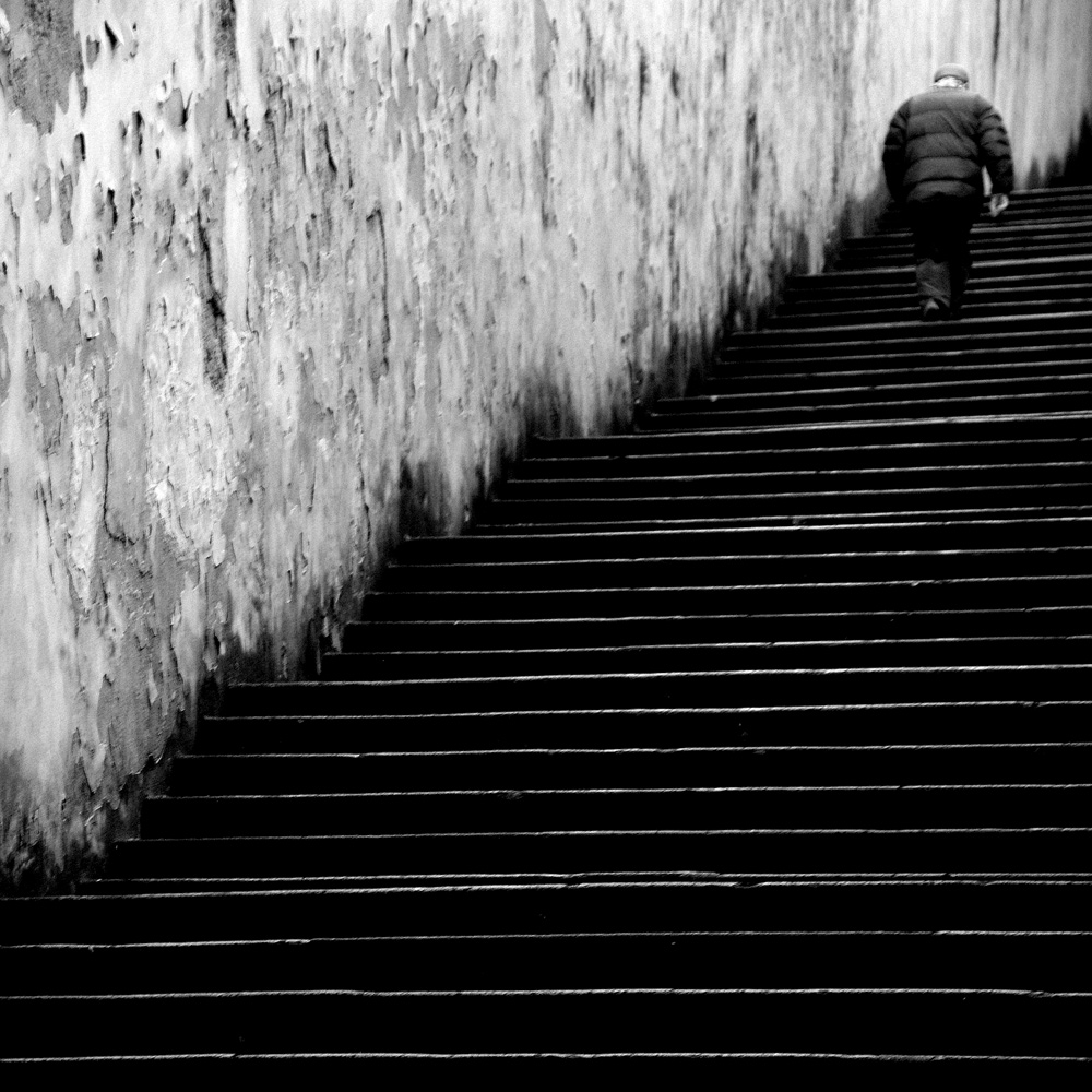 Racchiude bene in sè il senso della fatica di salire una lunga scalinata. Ma anche simbolicamente la parabola della nostra esistenza.