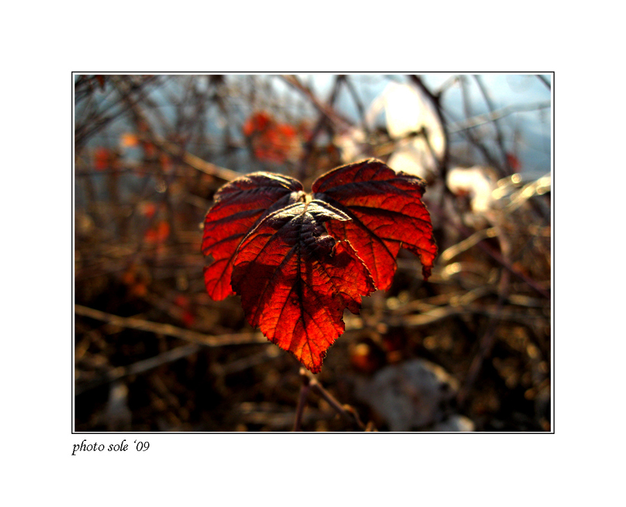 bravo sole...un bel controluce...molto belle le venature delle foglie di rovo...bello anche lo sfondo...la prossima volta metti sul lato il soggetto principale,ma anche cosi' puo andare...ciao Smile