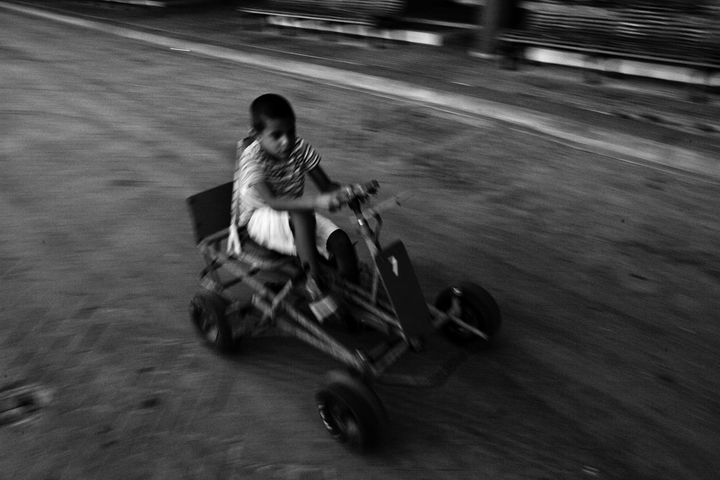 forse non è street, ma chissenefrega.. il panning (anzi, mossing) è perfetto e l'inquadratura è meravigliosa.. così dall'alto, con lo spazio dietro e non davanti come la regola vorrebbe, inserisce il bambino dall'espressione un po' timorosa all'interno di nu qualcosa che sembra ben più grande di lui.