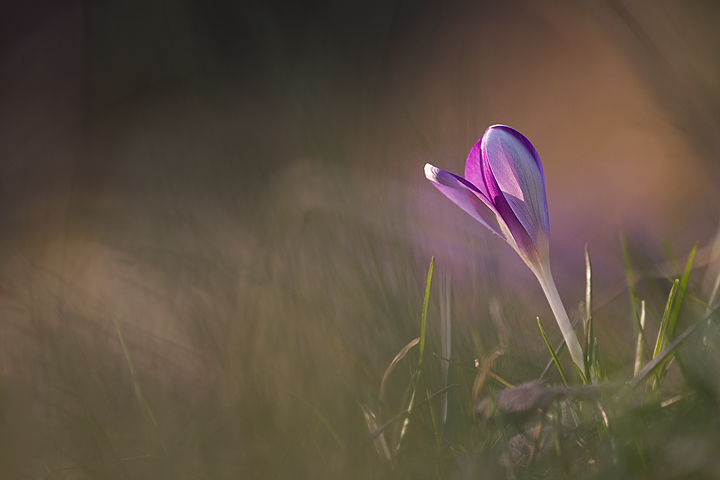 Un'immagine rarefatta, delicatissima nello sfumato dai toni neutri che si dirada come nebbia per lasciar vedere il piccolo croco tutto intento a godere dei raggi di un tiepido sole finalmente primaverile. Un sussurro delicatissimo che mi parla della tua sensibilità e dela tua straordinaria capacità di vedere ciò che c'è di più prezioso anche in un angolino di giardino. E non sai solo vedere, sai fermare l'incanto in una manciata di pixel e restituircelo in un'immagine ch è poesia e che parla al cuore prima che agli occhi.