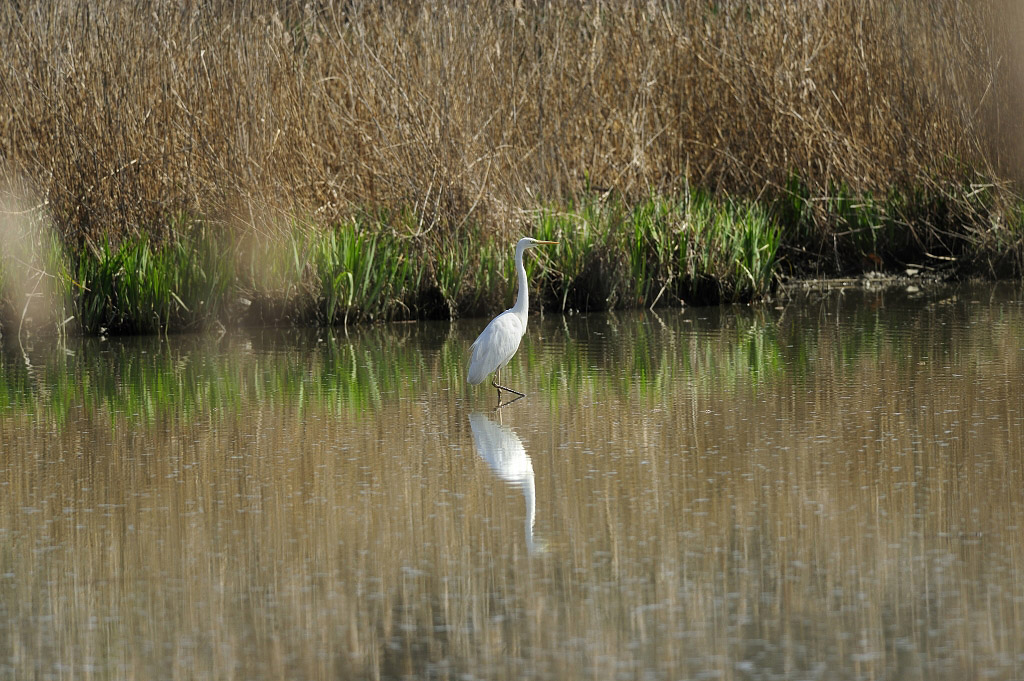 Mi piace il contrasto del bianco del "pennuto" con il verde della riva.