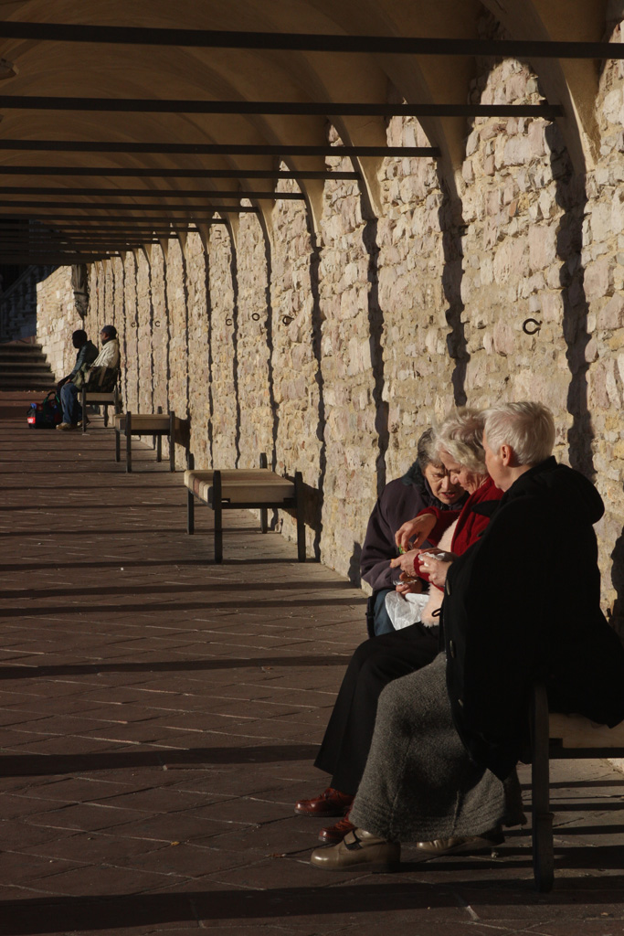 buono il punto di ripresa che mette in contrapposizione le signore in primo piano con i due signori in fondo, bella anche graficamente per le arcate e le ombre che la compongono  |