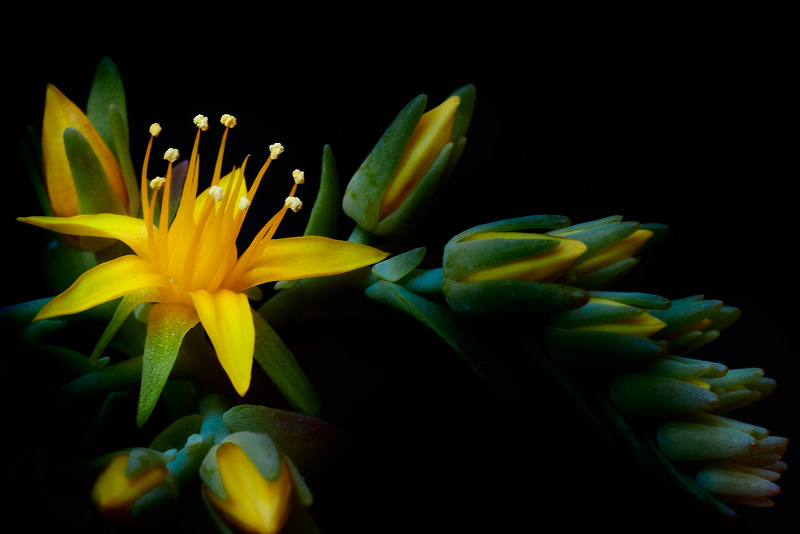 Buoni la composizione ed i colori. La bellezza di questo scatto sta nell'arco che si crea dal fiore grande fino ai boccioli più piccoli. Buono il controllo del flash. Unico neo è il bocciolo in basso attaccato al bordo. Se ti è possibile nelle prossime foto inserisci i dati di scatto utili a tutti qui nel forum.