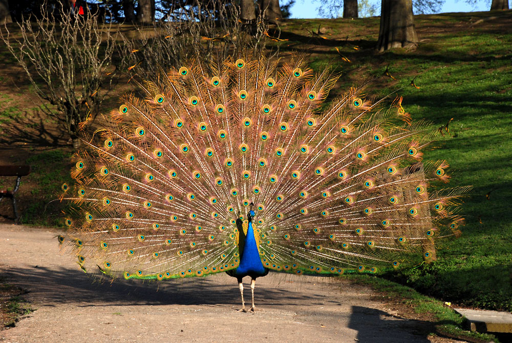 Non riesco a capire che cosa sia quell'elemento posto dietro il margine dx della della ruota del pavone. Dalla base sembra un albero, ma che poi si interrompe...cmq lo scatto risulta assai piacevole. Bravo  |