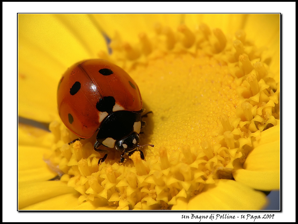 Appena ho aperto la foto sono rimasto a bocca aperta... uno scatto bellissimo, la maffatura sulla coccinella è perfetta, cromaticamente e compositivamente stupenda... complimenti sinceri per questo favoloso bagno di polline...  _________________ Massimo |