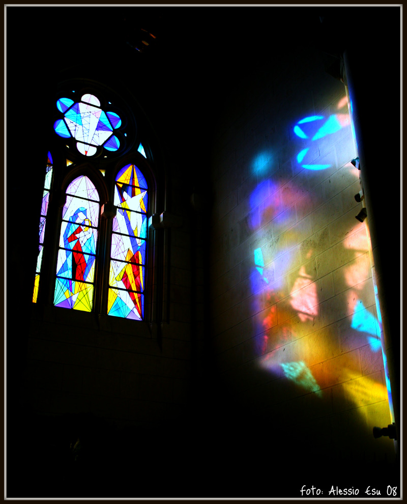 Peccato per quei faretti che spuntano dal lato destro, e che rovinano un po' la scena ripresa.. molto interessante la luce che filtra da questa vetrata di quella che sembra una chiesa dal sapore prettamente gotico, e illumina la muratura interna ricreando quasi fedelmente la stessa scena..