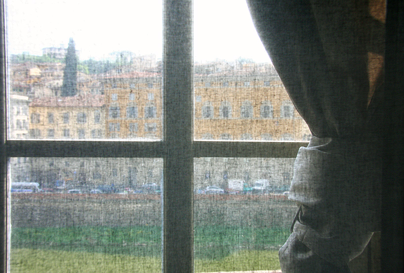 | Il retino non è di photoshop ma quello naturale di protezione alla luce alle opere del Museo degli Uffizi posto vicino alle finestre che danno sui Lungarni fiorentini. |