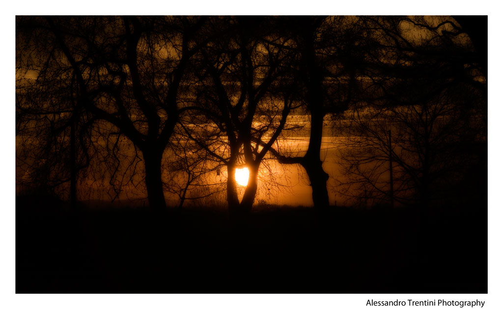 Particolare e bello questo intreccio di rami al tramonto, forse l'avrei vista un pelino più luminosa ma questo è soggettivo mentre il taglio avrei proprio elinato 2/3 cm. in basso lasciando una foto ancor più panoramica e centrata proprio sui rami