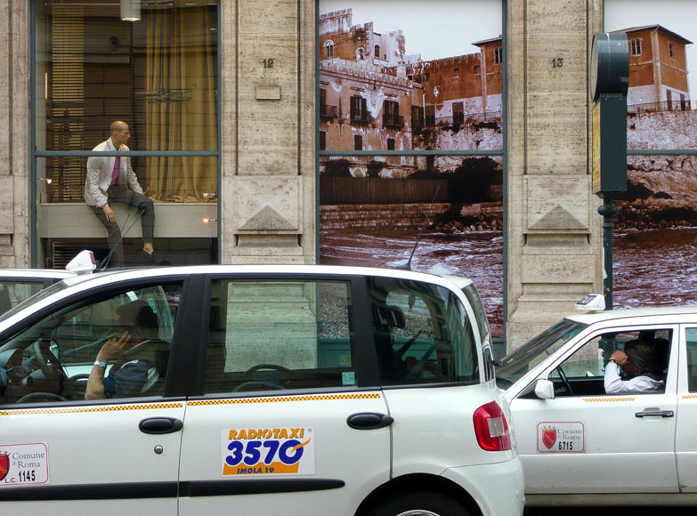 Avrei chiuso di più l'inquadratura sul manichino che sembra appoggiare il piede sul tetto del taxi a sinistra.