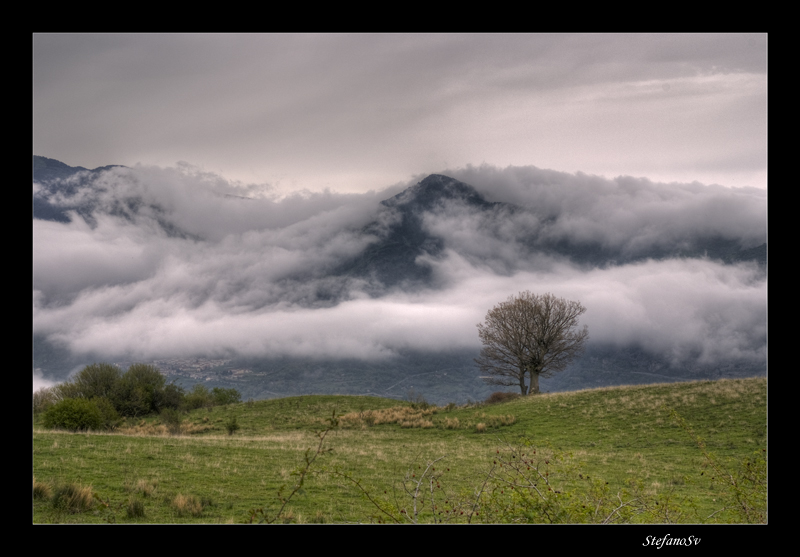 La nebbia che si espande sui monti sullo sfondo rende lo scatto di particolare e suggestiva bellezza.
