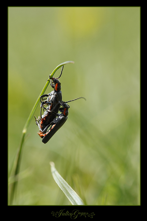 molto bella la compo, anche se il filo d'erba bruciato distrae un po', inoltre il controluce non mi sembra perfettamente risucito, i soggetti sn in buona parte scuri.