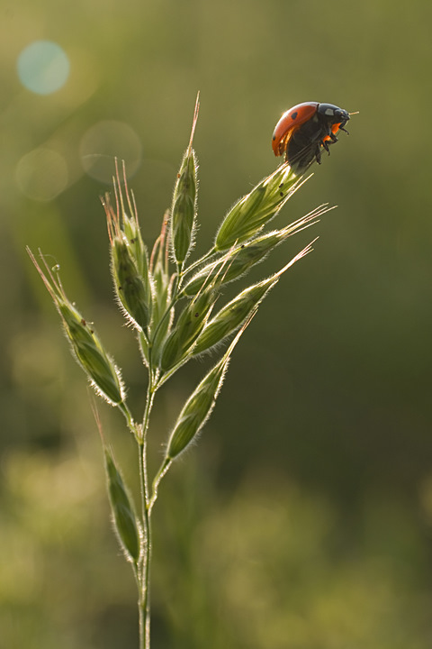 Il controluce ha donato nitidezza al posatoio ed alla coccinella con le elitre aperte. Pronta "in partenza". Bravo.