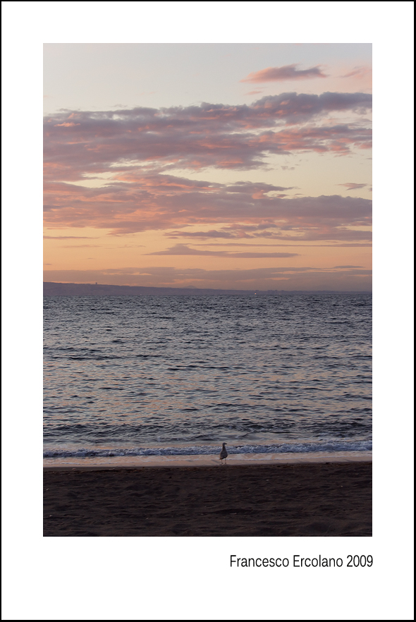 Piccolo quel gabbiano,quasi nulla nell'economia dello spazio,eppure centro d'interesse deciso sul quale posare lo sguardo per poi lasciarlo salire verso i tuoi colori sempre eleganti ne loro delicato gradiente.