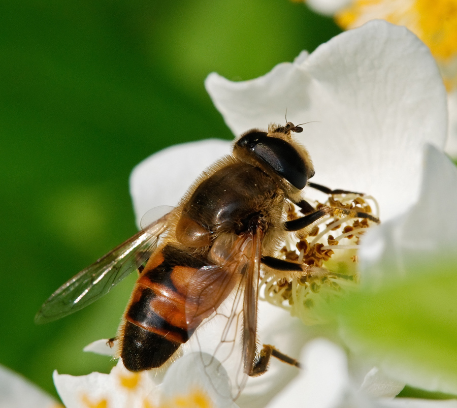 L'ape è abbastanza ben ripresa. Il fiore è quello che madre natura ti ha fornito e fotograficamente parlando non è il massimo per la diversità dei colori.