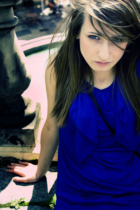 Tinte un po' elettriche sul soggetto, complice anche il blu vivido dell'abito che dialoga modernissimo con le cromie dello sguardo. Il tutto si stempera nello sfondo, fino a che i colori, per contro, si fanno più cupi e indistinti.