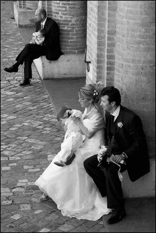 Mi piace! Sembra un confronto a distanza tra la sposa e l'invitato su chi tiene meglio il bambino...bella proprio!! Complimenti! Ok!